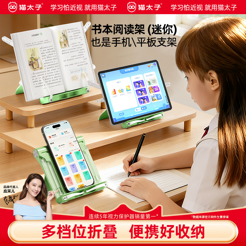 猫太子书本阅读架手机平板支架折叠便携收纳看书立读书夹书架儿童学生宝宝婴儿绘本桌面桌上固定器支撑架神器