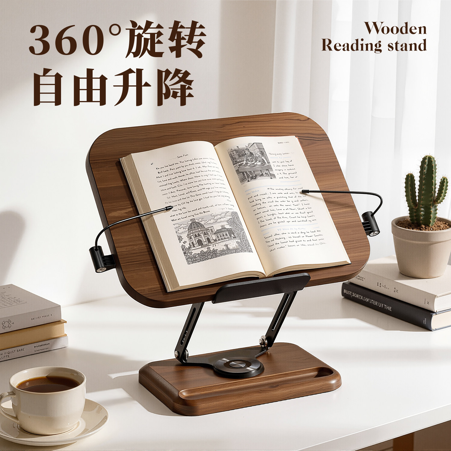 阅读支架成人读书支架书夹桌面可旋转看书多功能升降胡桃木阅读架