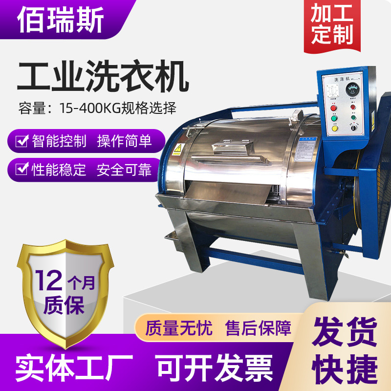半钢工业洗衣机酒店用50公斤不锈钢半自动卧式水洗机滤布清洗机