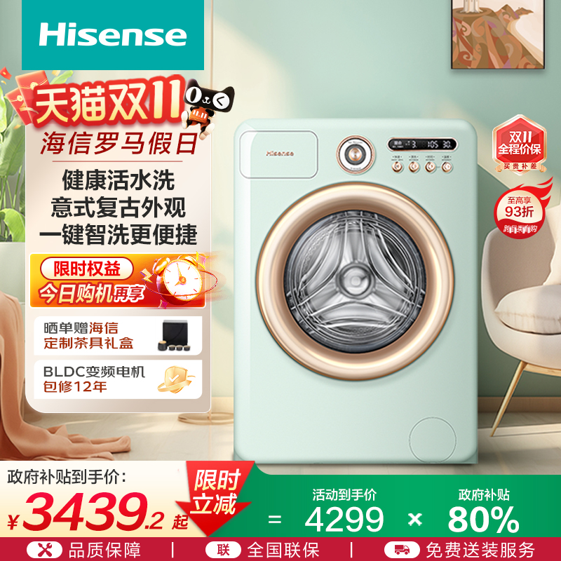 海信12公斤大容量全自动滚筒洗衣机除螨健康活水洗脱一机A0Q-7