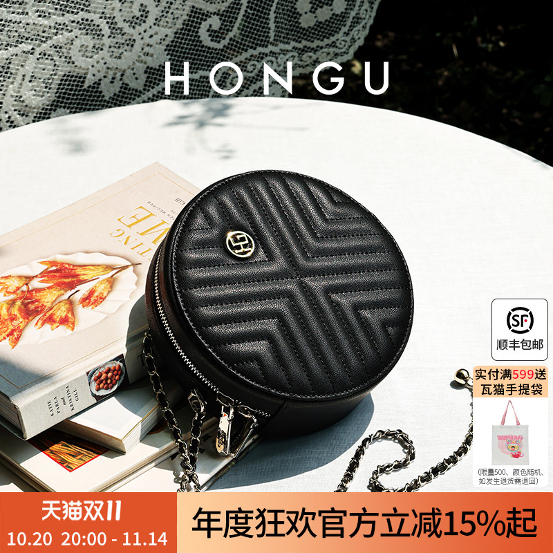 红谷包包女新款牛皮链条单肩斜挎包今年流行女款小圆包斜跨女士包