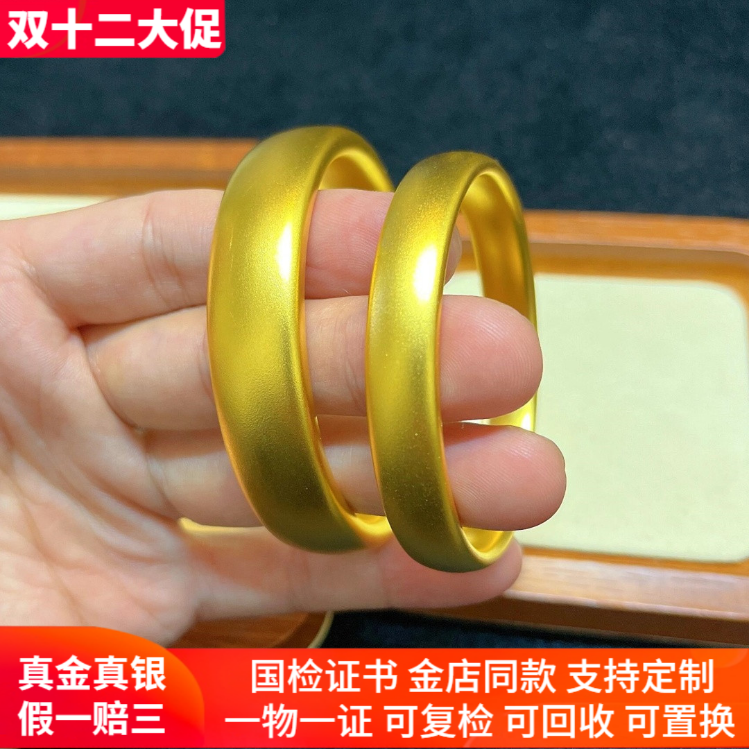 周六福古法银手镯女磨砂S999足银素圈镯情侣圣诞礼物送男友送女友