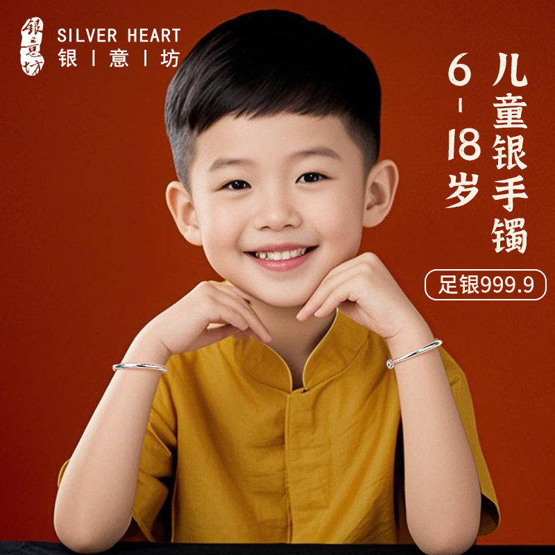 儿童银手镯男童男孩12岁小学生初中生银镯子纯银9999生日礼物男生
