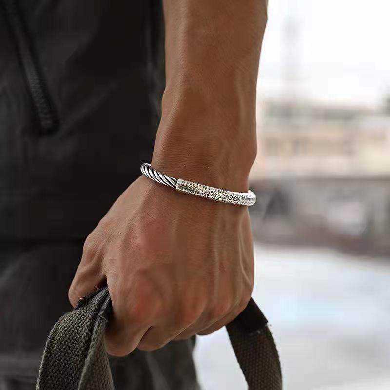 S999纯银转运吉祥回纹莫比乌斯手镯男复古风做旧简约百搭镯子手环