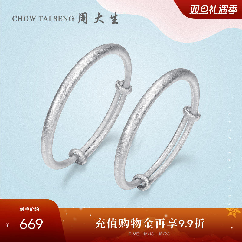 周大生宝宝纯银手镯一对S990镯子男女儿童婴儿一周岁礼物可刻字
