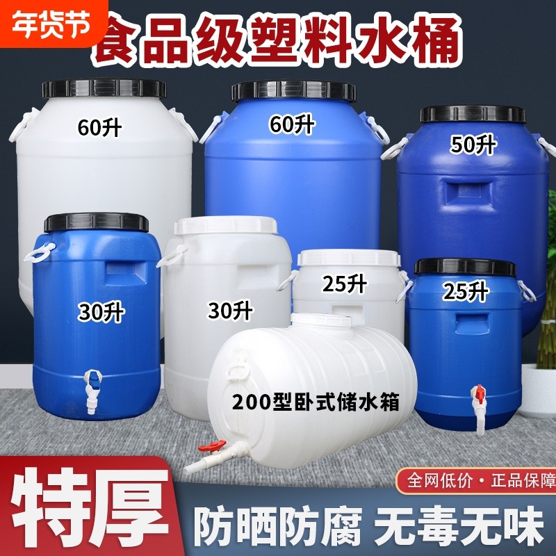 家用塑料水桶手提储水桶食品级酵素桶加厚带盖超大圆桶25L50L100L