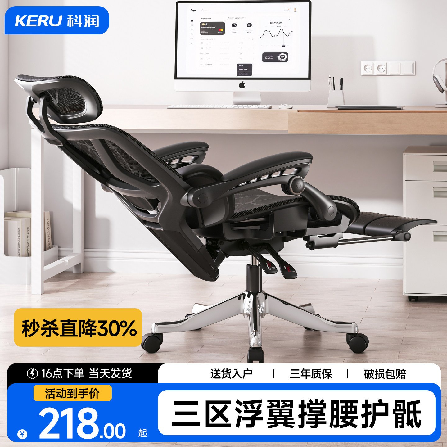 人体工学椅子护腰电脑椅家用舒适久坐办公椅午睡两用宿舍电竞座椅
