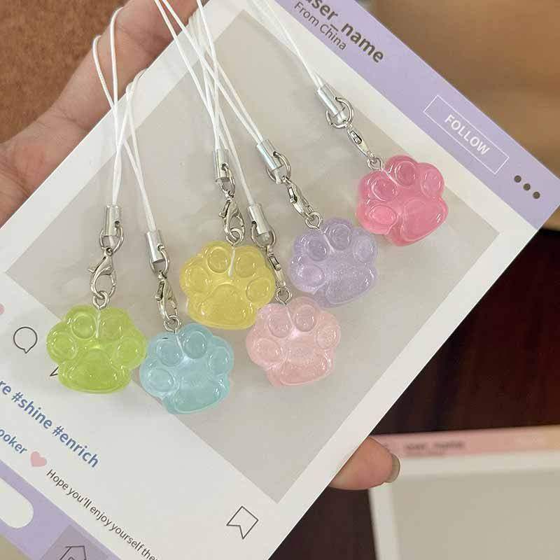 七彩冰透细闪猫爪手机绳可爱手机链学生闺蜜礼物包包挂件挂饰情侣