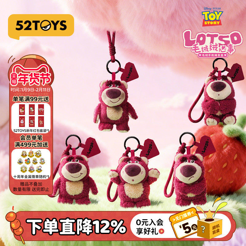 52TOYS迪士尼草莓熊毛绒绒心事毛绒手机绳盲盒挂件潮玩玩具礼物