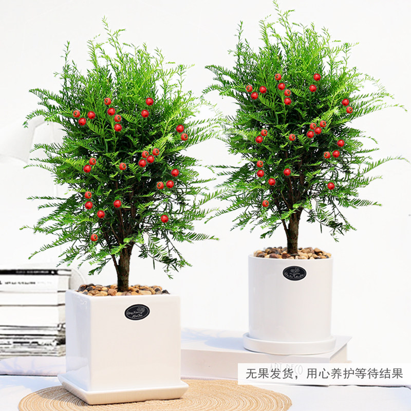 带果曼地亚红豆杉盆景树苗盆栽大树地栽庭院别墅室内客厅公母搭配