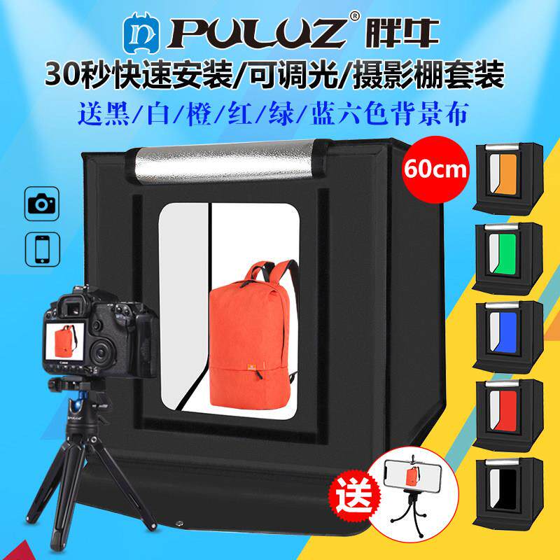 胖牛LED小型摄影棚60CM套装迷你淘宝拍摄拍照灯箱柔光箱摄影道具