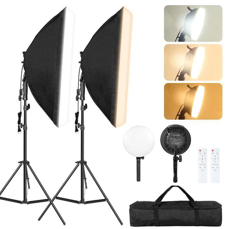 摄影棚柔光箱套装LED灯泡直播拍照遥控三色调节50*70cm美颜补光灯