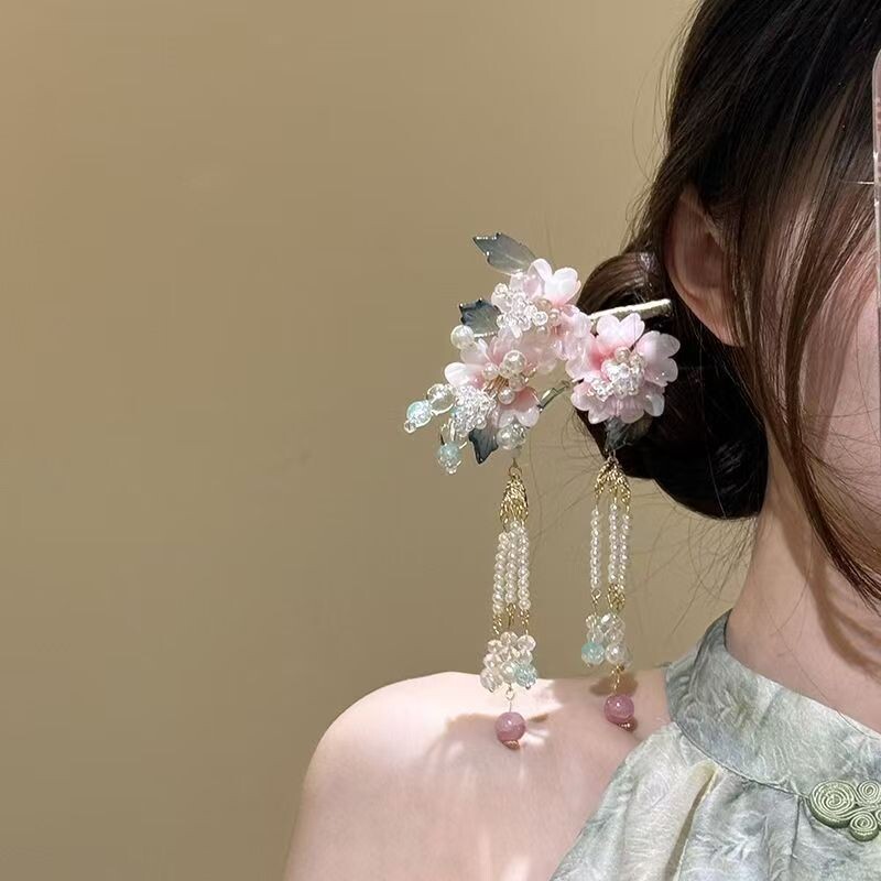 繁瑾迷情~新中式簪花绢花花朵发钗流苏发簪子古典头饰汉服头饰品
