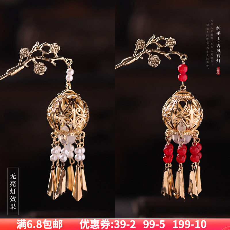 古风发簪宫灯发光步摇风铃簪子古典后脑勺灯笼盘发发钗高级感发饰