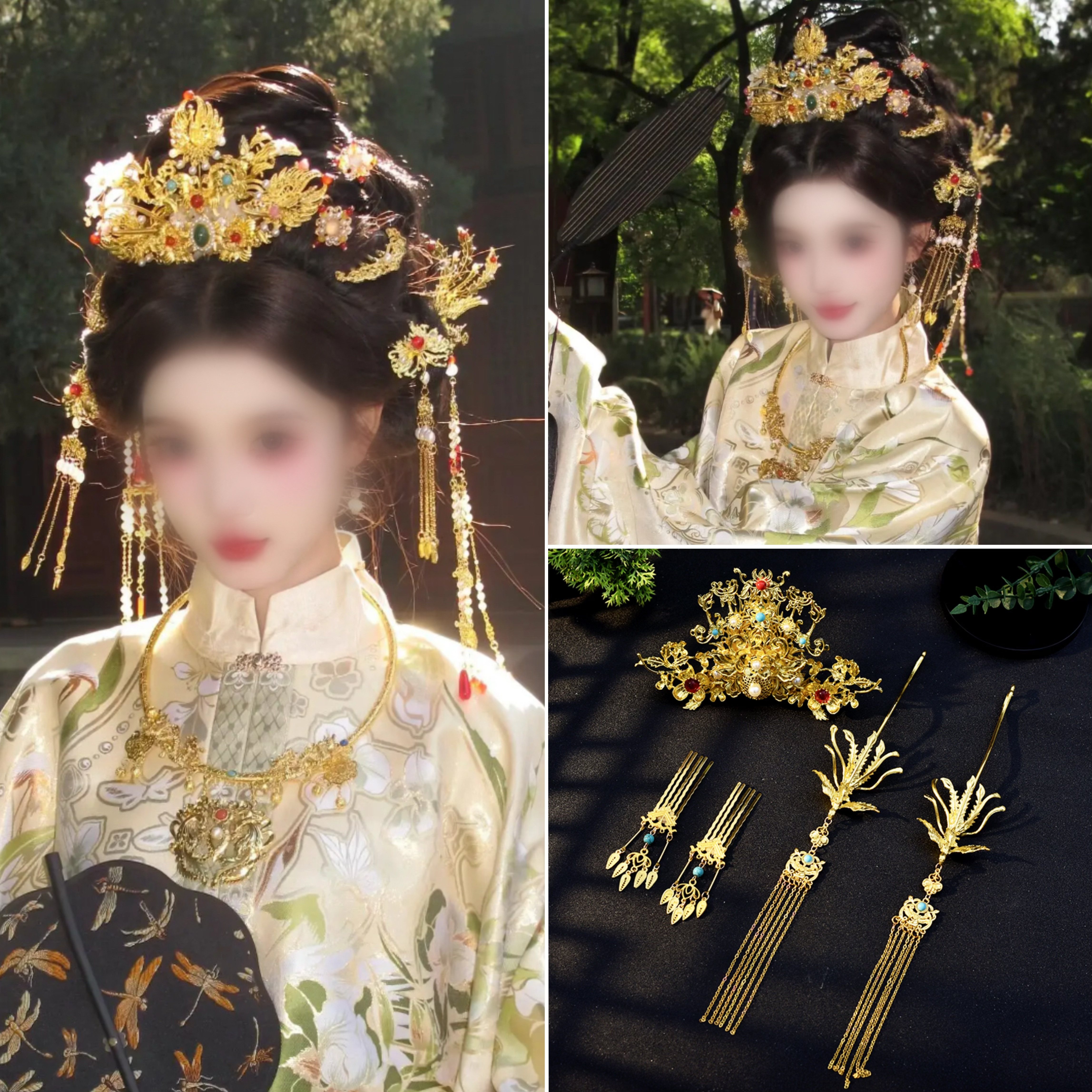中式新娘头饰古风步摇发簪子古典汉服龙凤褂配饰结婚礼秀禾服发饰