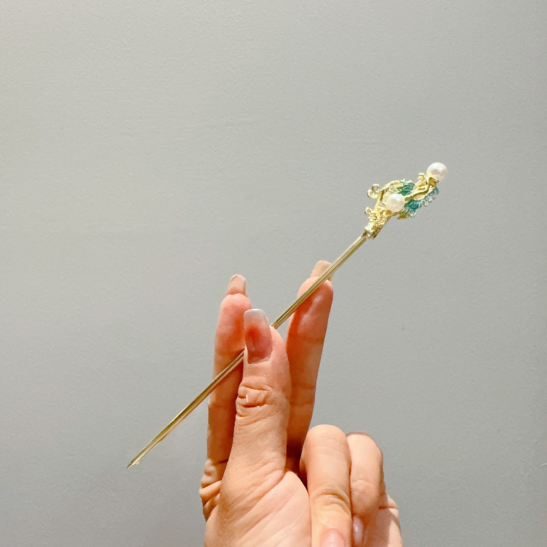原创清风荷叶汉服旗袍日常盘发荷花木簪子古典风精致珍珠流苏发簪