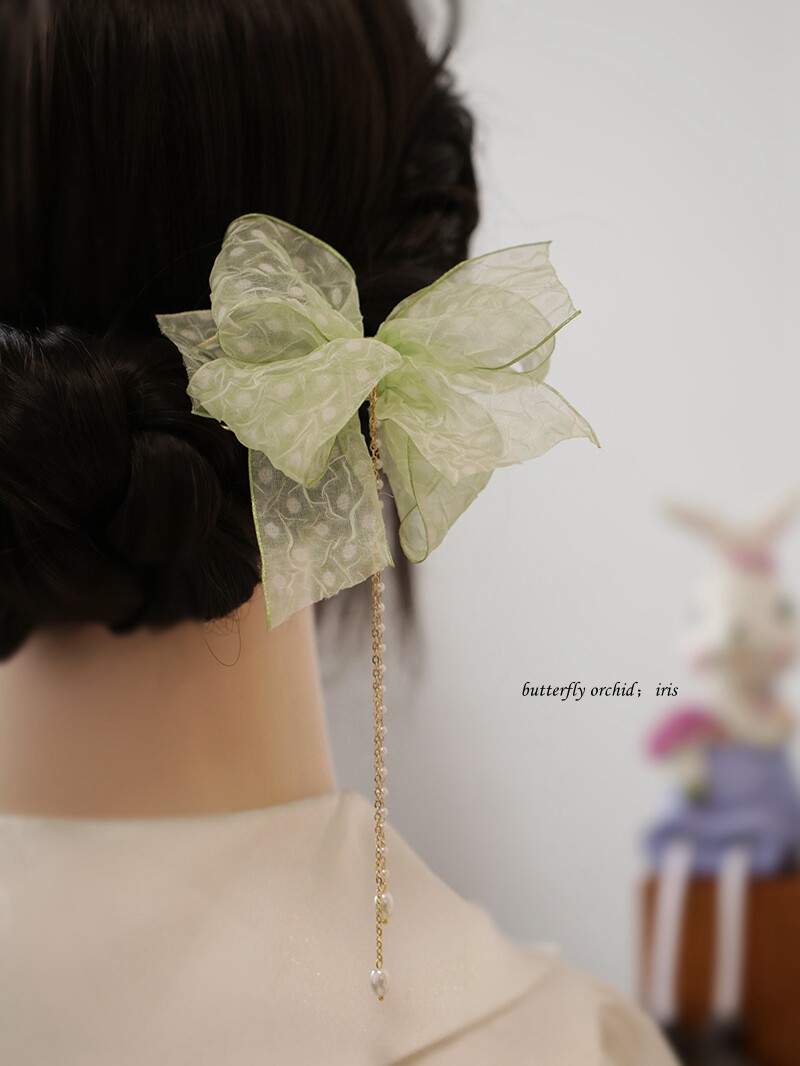 公主风~新中式簪花绢花朵发钗流苏发簪子古典头饰汉服头饰盘发器