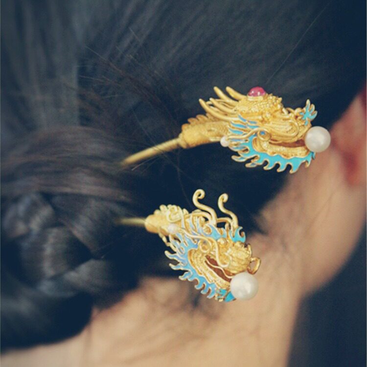 龙簪故宫发簪烧蓝簪子古典汉服旗袍盘发民族风古手工龙头新年头饰