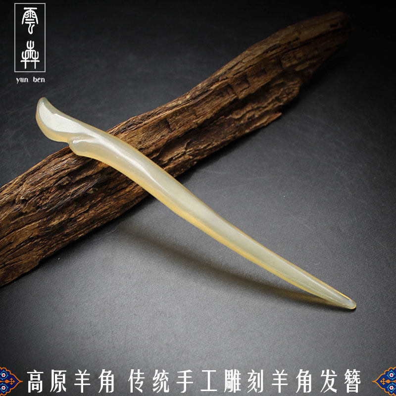 云犇羊角春芽发簪正品简约高原自然手工雕刻簪子古典步摇款送礼品