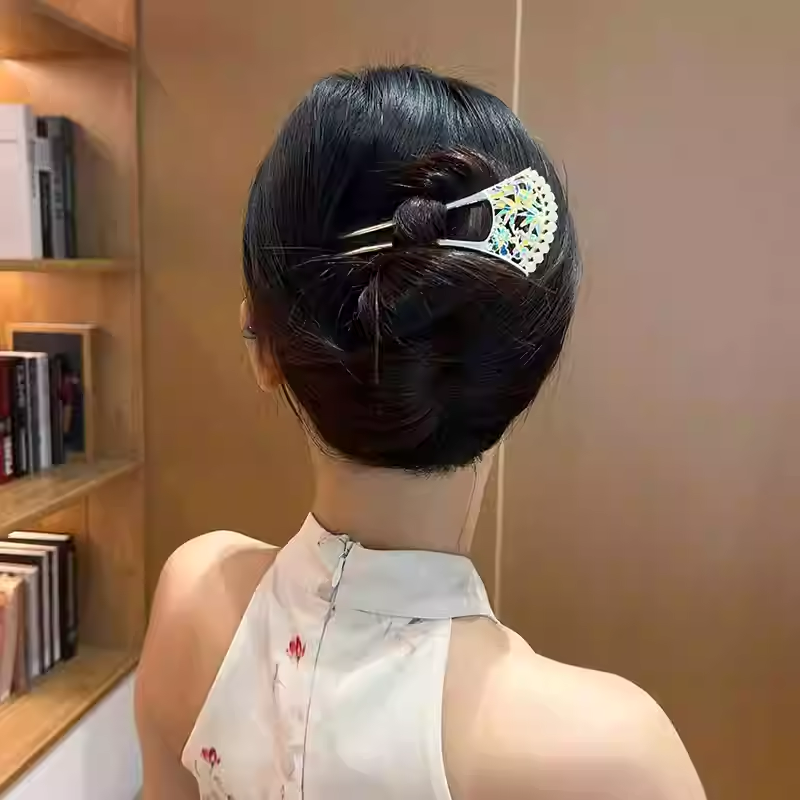 扇形螺钿u型发簪新中式后脑勺发钗盘发神器簪子古典气质头饰发饰