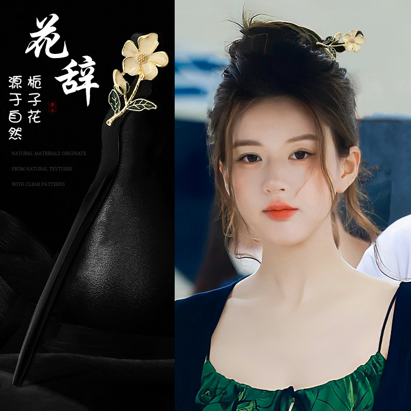 新中式栀子花发簪女款高级感国风旗袍马面裙盘发簪子古典清冷发饰