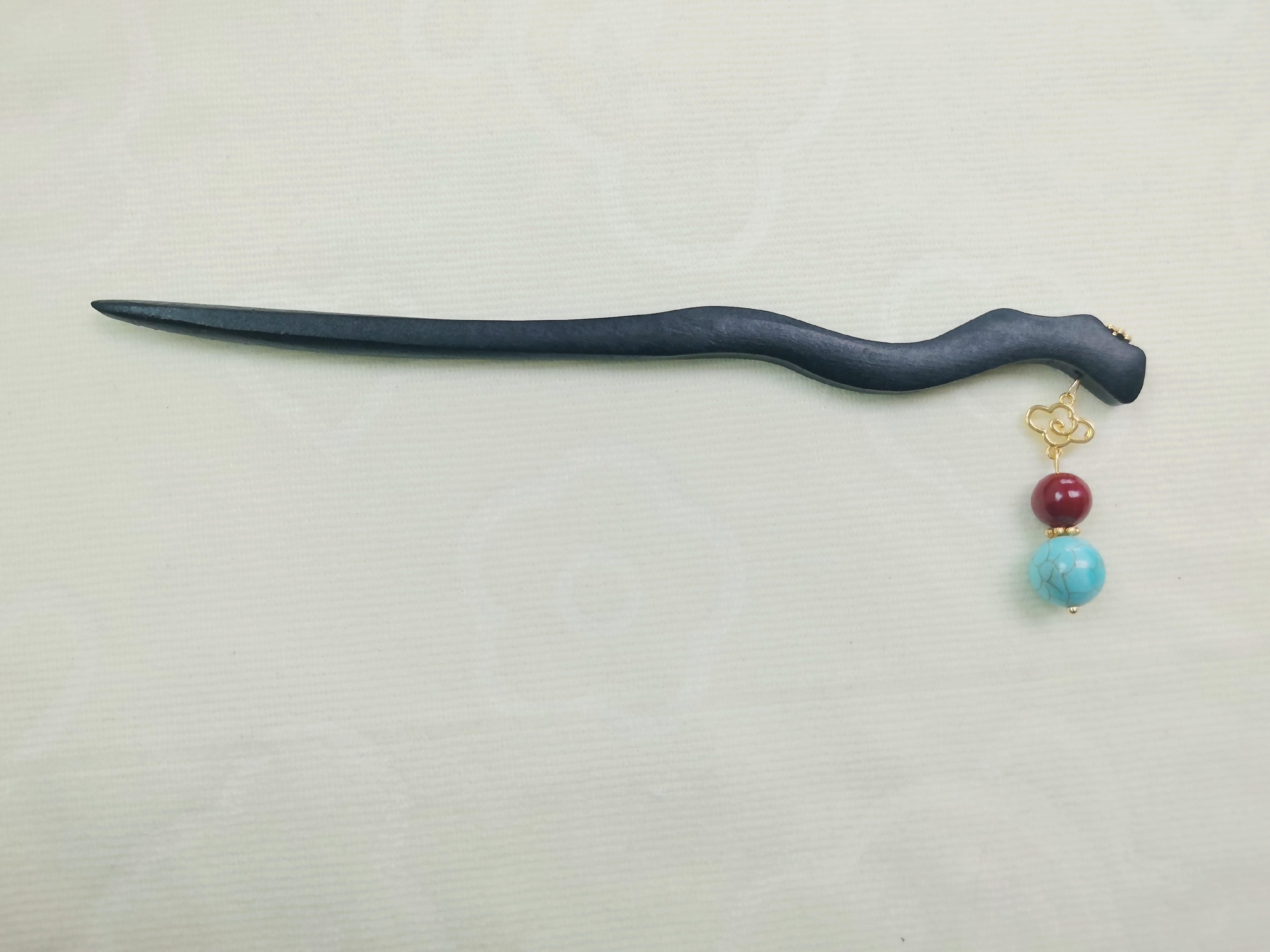 小李子黑檀木U型双钗发簪新中式古风盘发木簪子古典旗袍配饰发钗