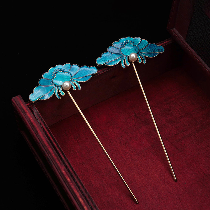 汉服烧蓝发簪明制簪子古典景泰蓝复古明清宫廷风古风百搭旗袍头饰