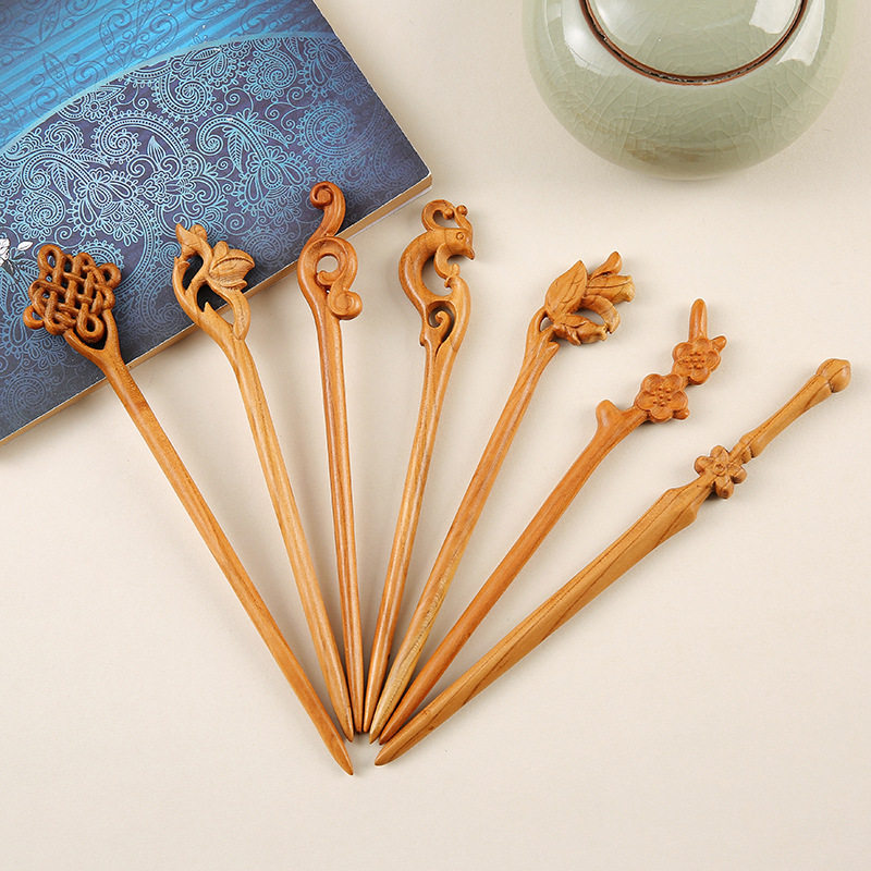 古风檀木发簪中国风简约百搭实木簪子古典雅观头饰簪子丸子头盘发
