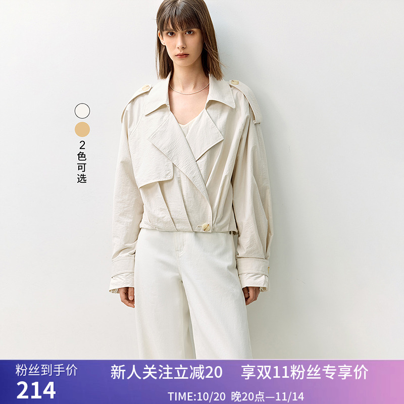 LILY奥莱秋款女装都市设计感风衣领OL通勤职场显高显瘦短款外套