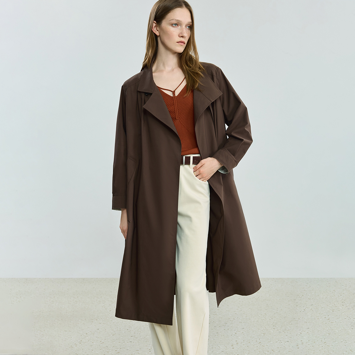 LILY2025秋新款复古廓形翻领腰带收腰气质通勤休闲长款风衣外套女