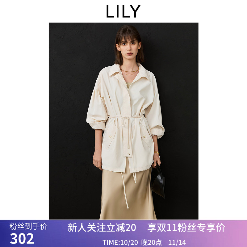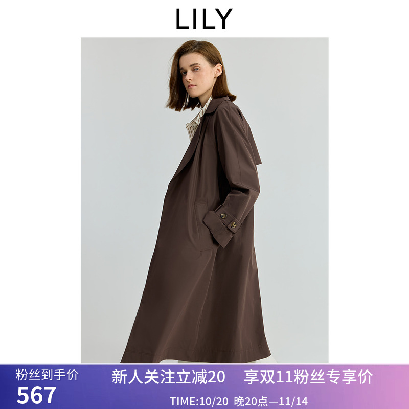 国内代购LILY/丽丽25年秋125350C1504中长款收腰韩版休闲风衣外套
