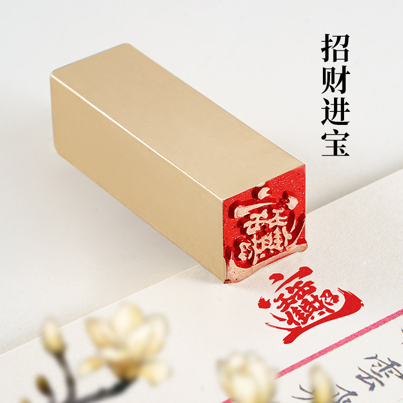 招财进宝 2x2x6cm合体字黄铜印闲章定制篆刻印章定刻书法书画铜章