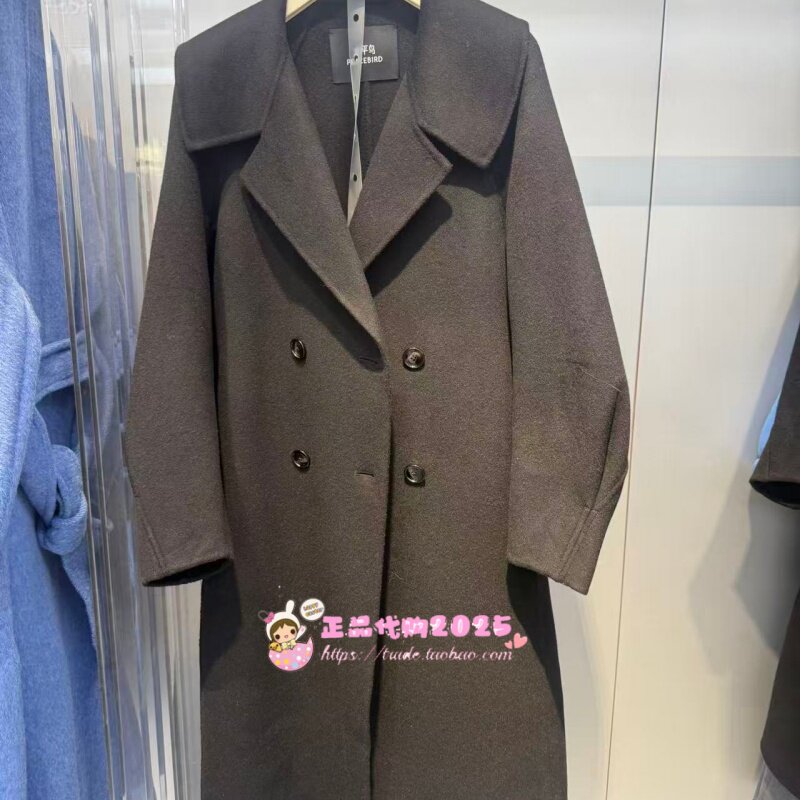 沫晗依美简约气质双排扣灯笼袖手工双面羊毛大衣25冬季毛呢外套女