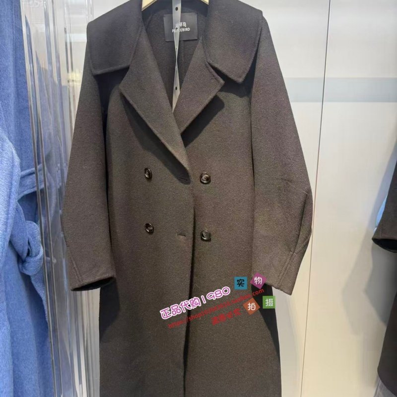 远家 纯羊毛双面呢灯笼袖大衣 宽松休闲中长款外套冬新Y-396限量