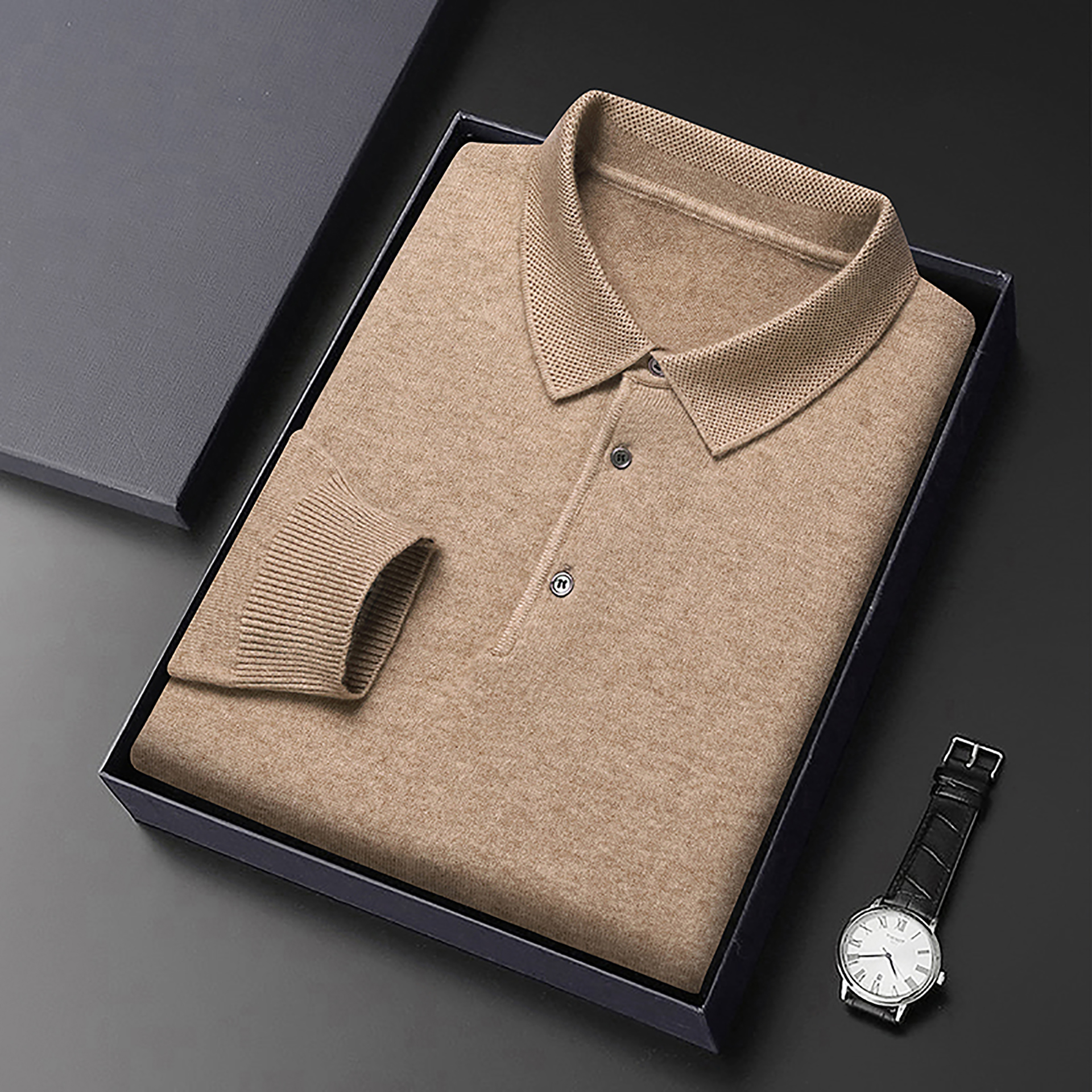 假两件套羊绒衫男加厚翻领毛衣中老年针织打底衫爸爸装加肥加大码