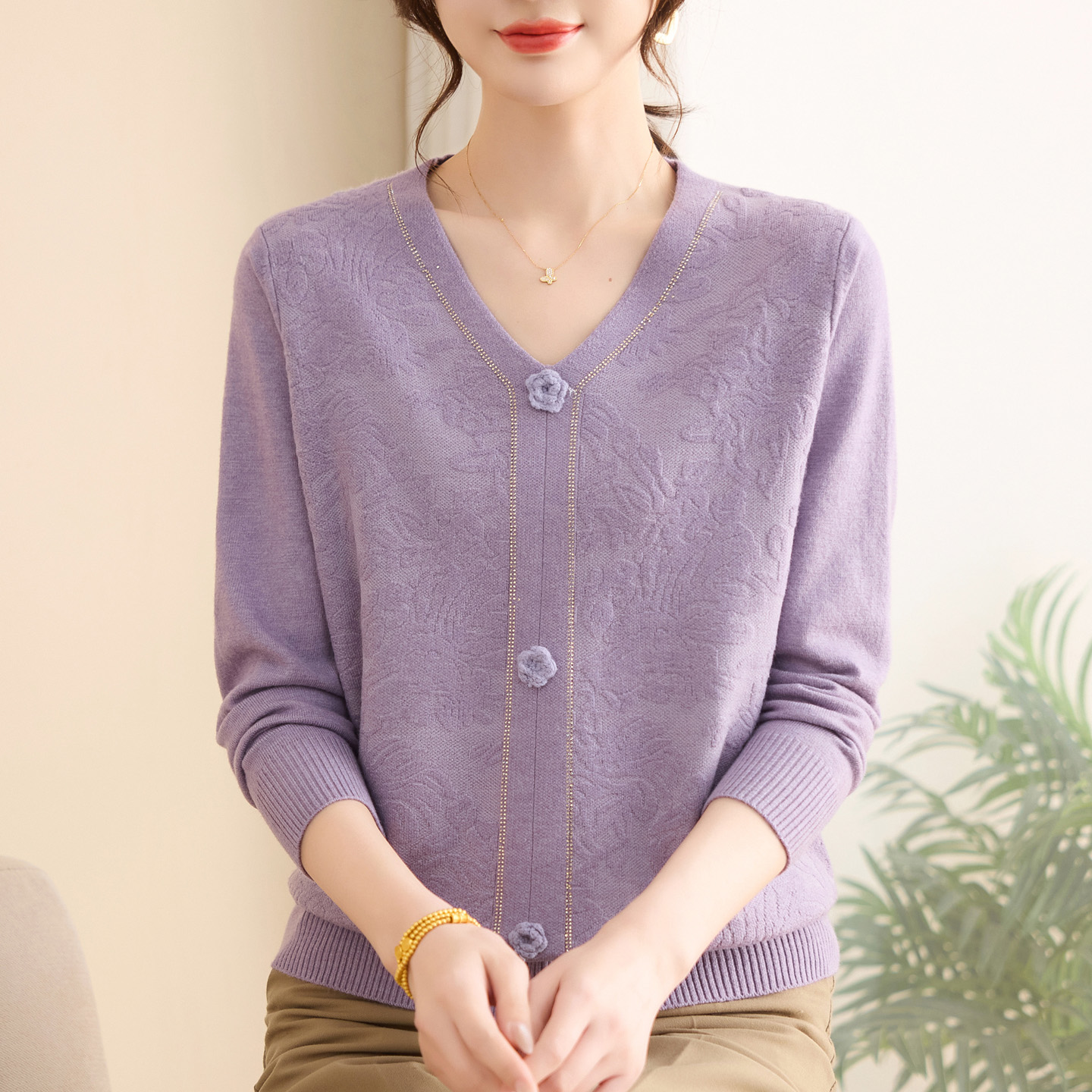 21春秋女装中老年羊毛羊绒毛衣女洋气妈妈宽松加肥加大新款打底衫