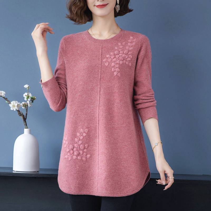 秋季提花羊毛衫女装加肥加大码中老年洋气妈妈上衣宽松羊绒打底衫