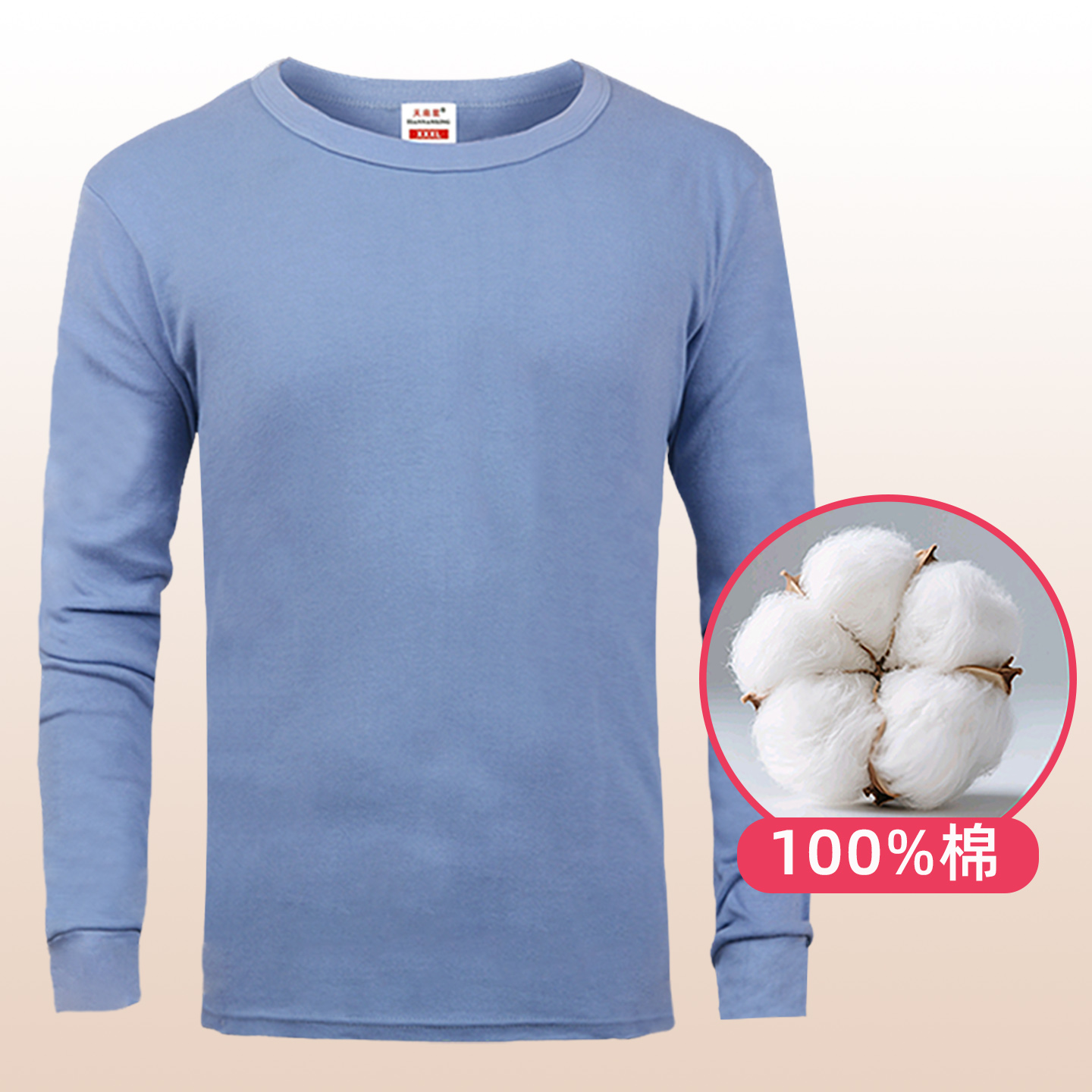 福利款纯棉秋衣男士保暖内衣全棉线衣中老年爸爸加肥加大码棉毛衫