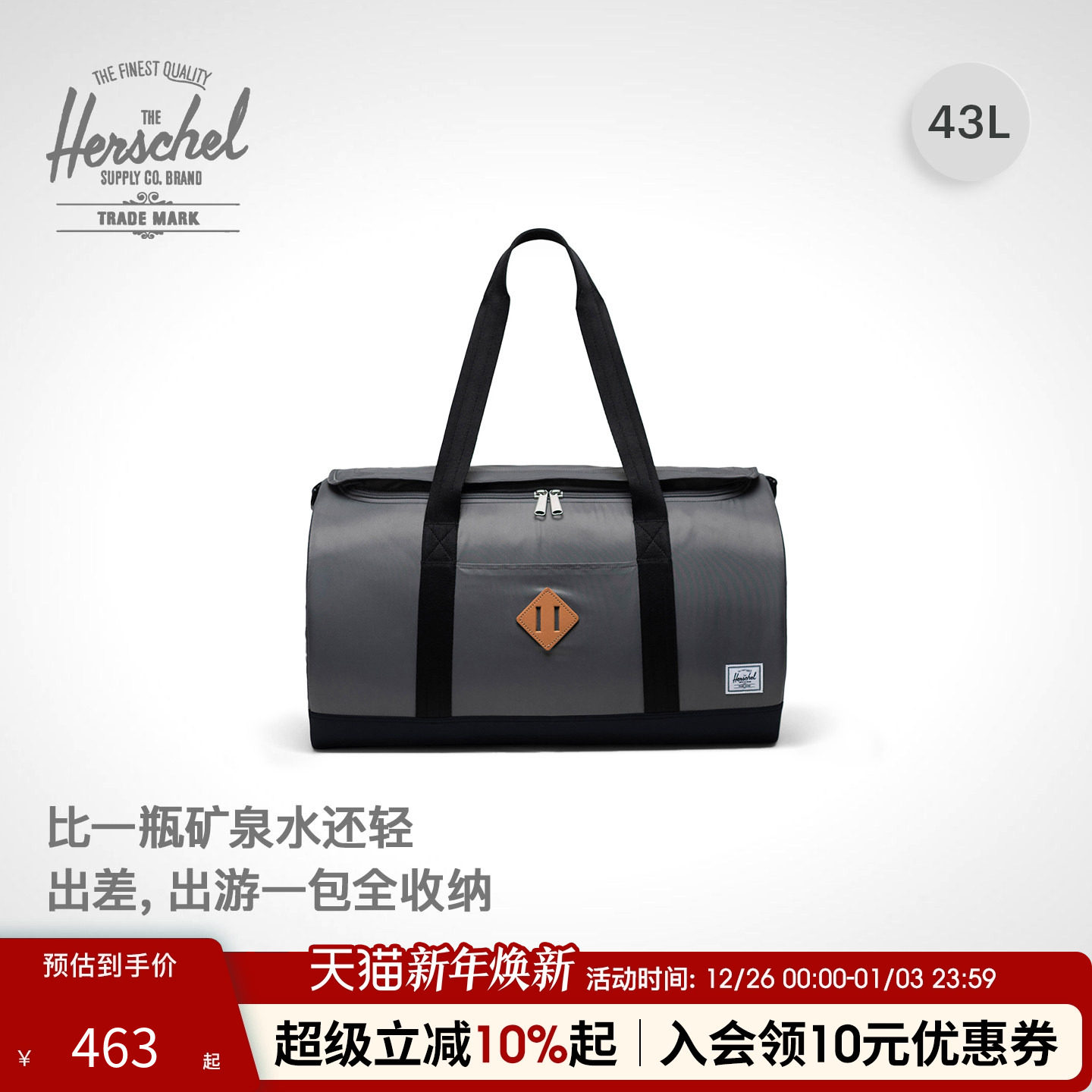 Herschel赫行轻量系列Duffle大容量36.7L斜挎手提运动健身旅行包