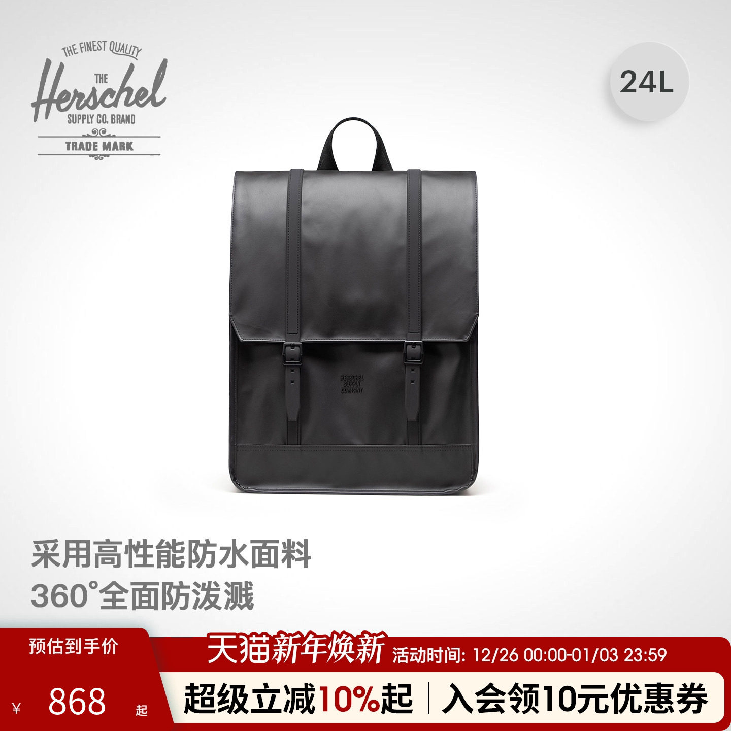Herschel赫行25新品新升级防雨Survey电脑双肩包书包商务24升背包