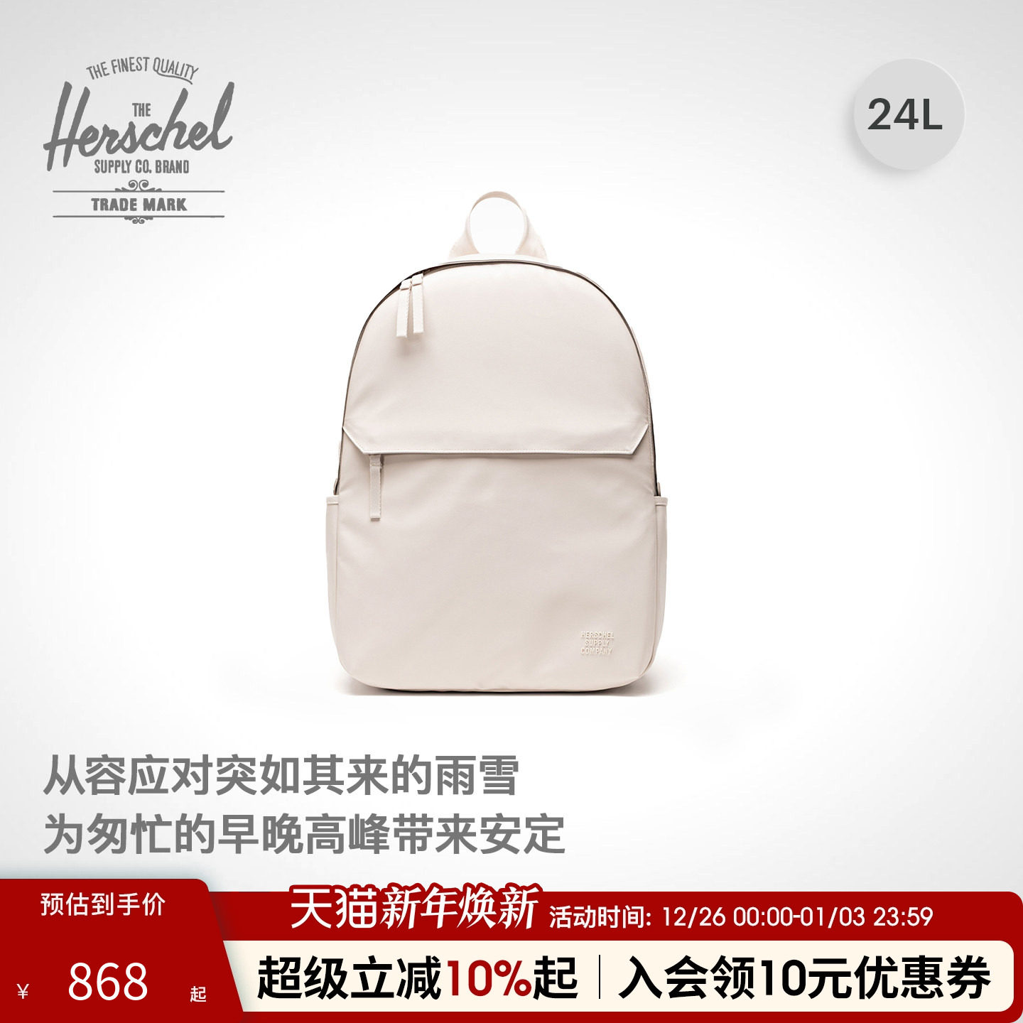 Herschel赫行轻量系列Heritage双肩包21.5升拉链包通勤大容量书包