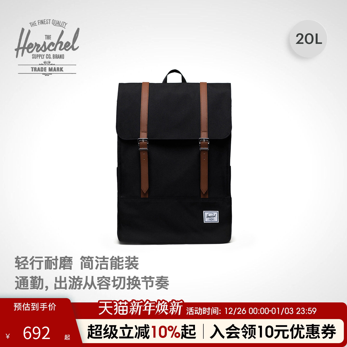 Herschel赫行 Retreat19.5L双肩男女潮牌大容量书包旅行双肩背包