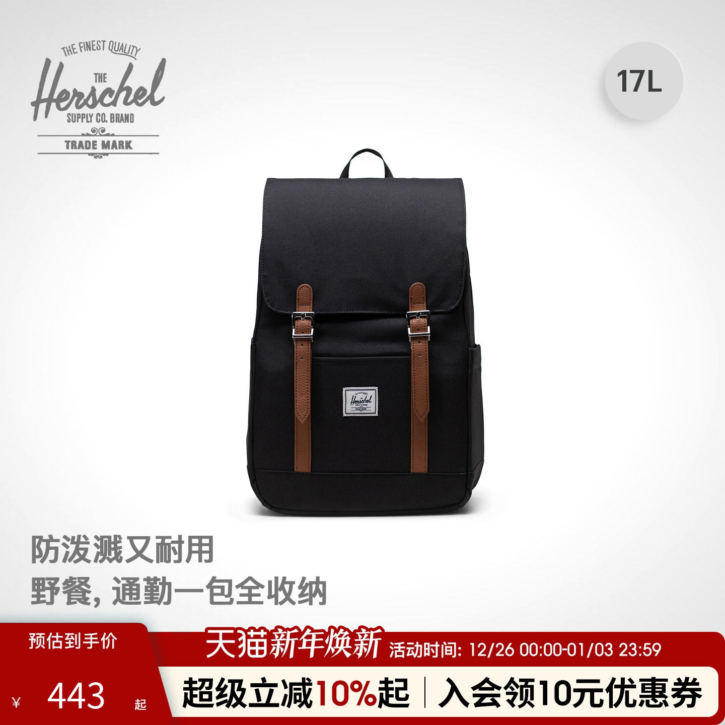 Herschel加拿大赫行轻量系列Retreat small男女15升双肩包通勤包