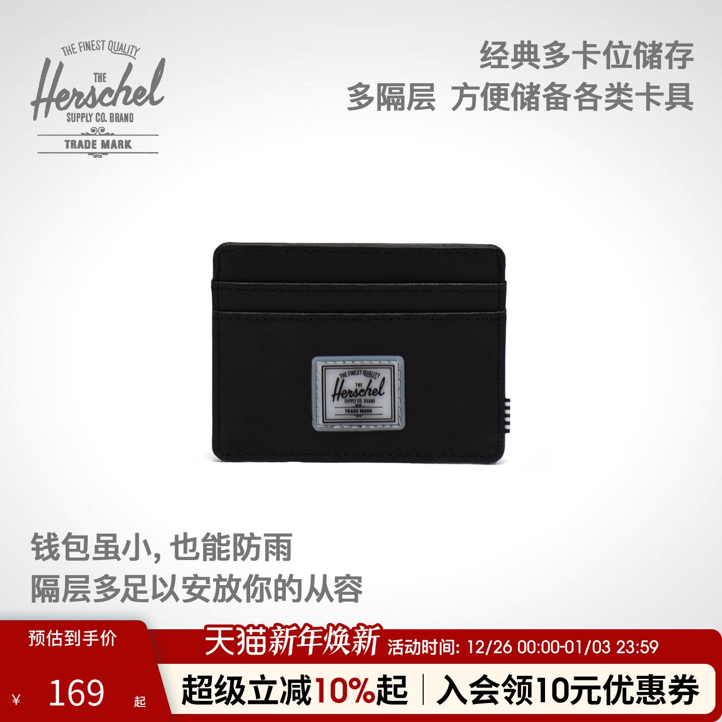 Herschel加拿大赫行防雨Charlie简约可爱卡包手机零钱包迷你小包