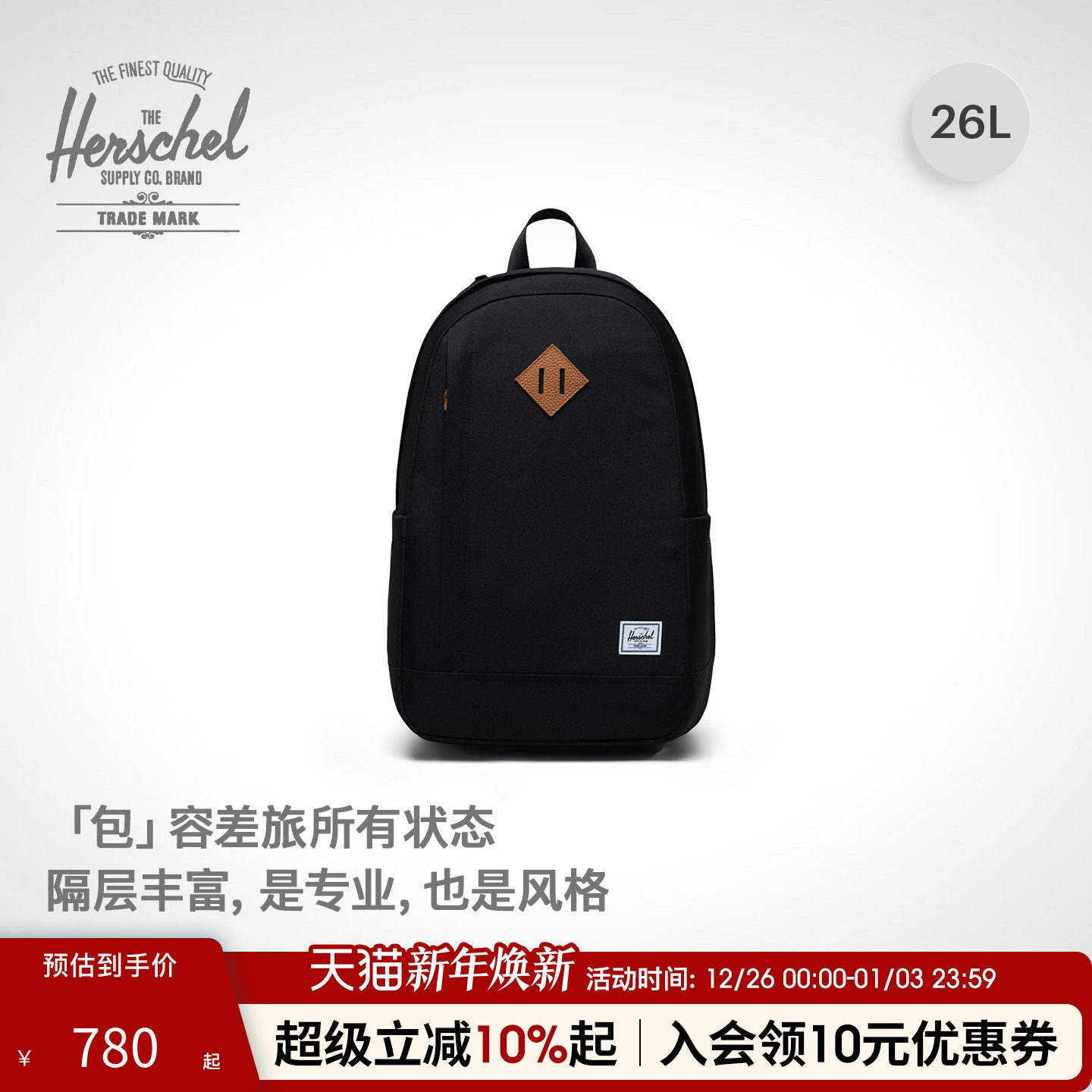 【黑标系列】Herschel赫行 新升级经典系列双肩商务通勤方形背包