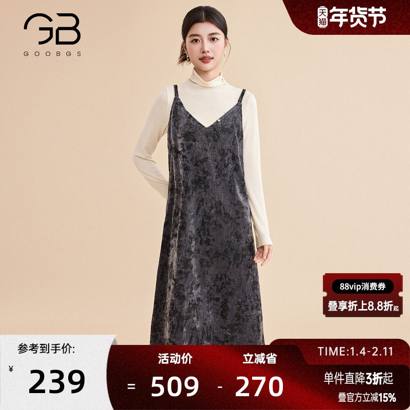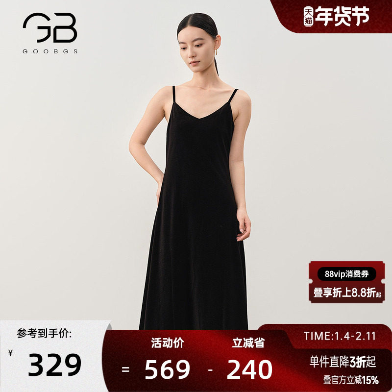 谷邦丝绒吊带连衣裙女2025秋冬新款气质显瘦高级感无袖中长款裙子