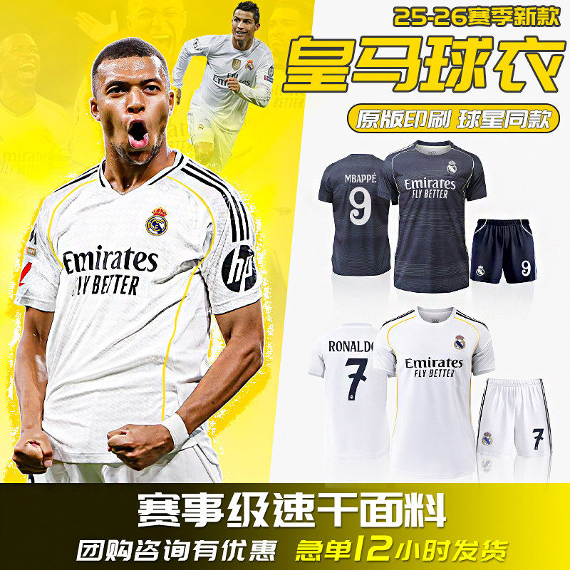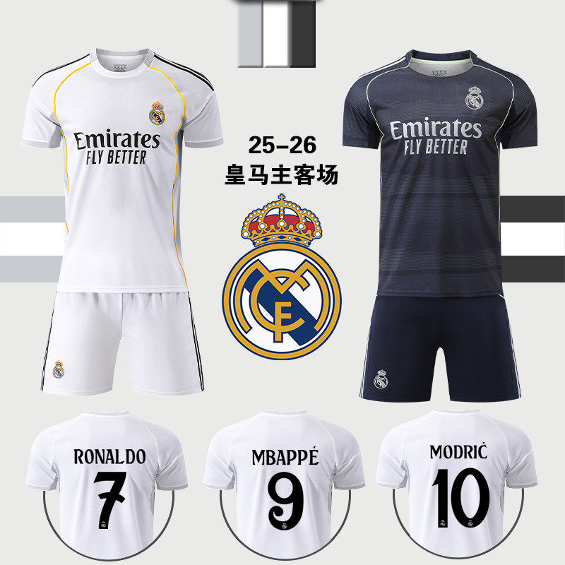 2025皇马球衣7号c罗姆巴佩足球服套装男儿童马德里定制比赛训练服