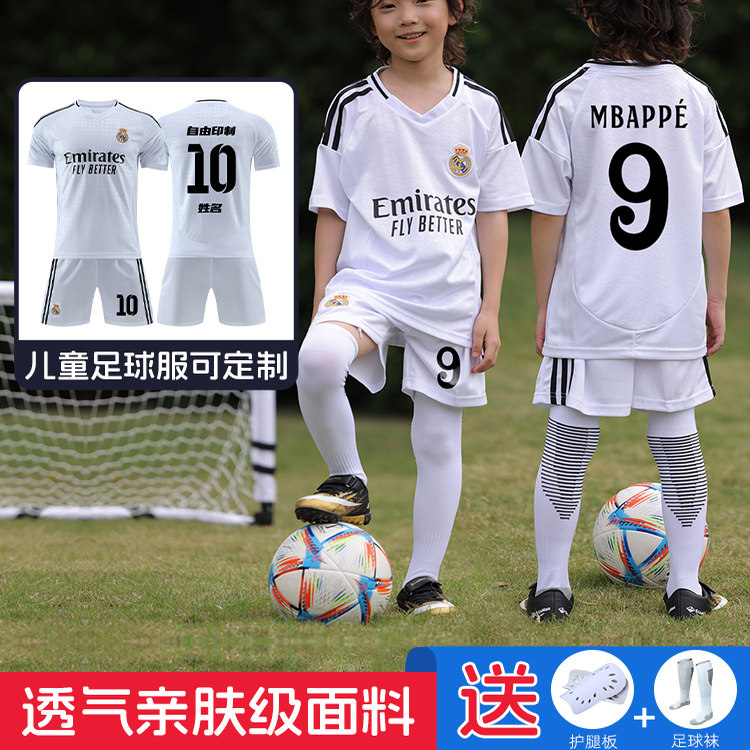 2526皇马球衣c罗姆巴佩足球服套装男儿童马德里定制主场训练队服