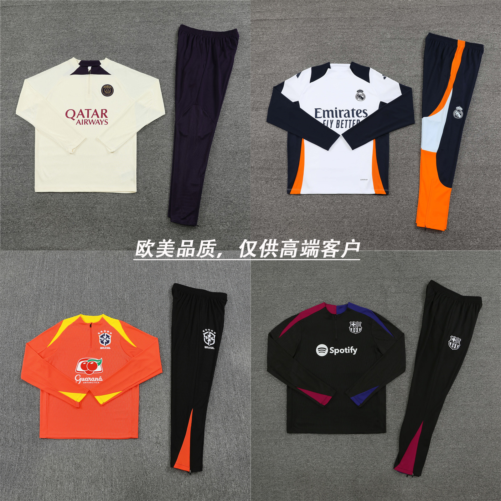 皇马足球训练服长袖半拉链秋冬成人巴黎球衣巴萨运动套装定制儿童