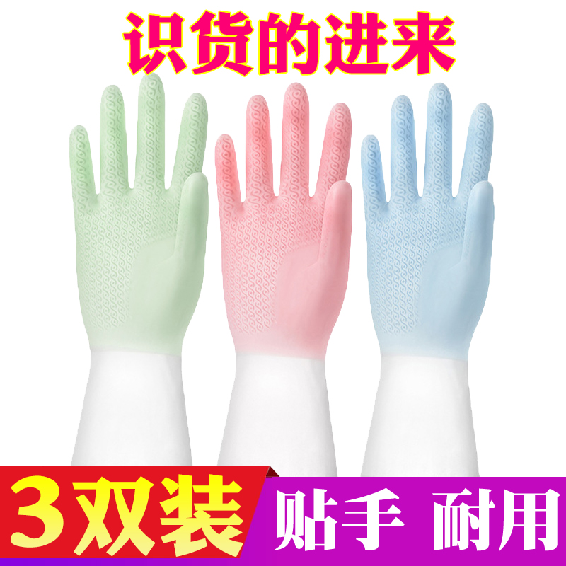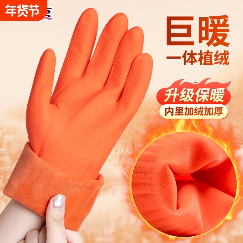 洗碗手套女防水橡胶加绒冬季厨房耐用型刷洗衣衣服皮家用加厚家务